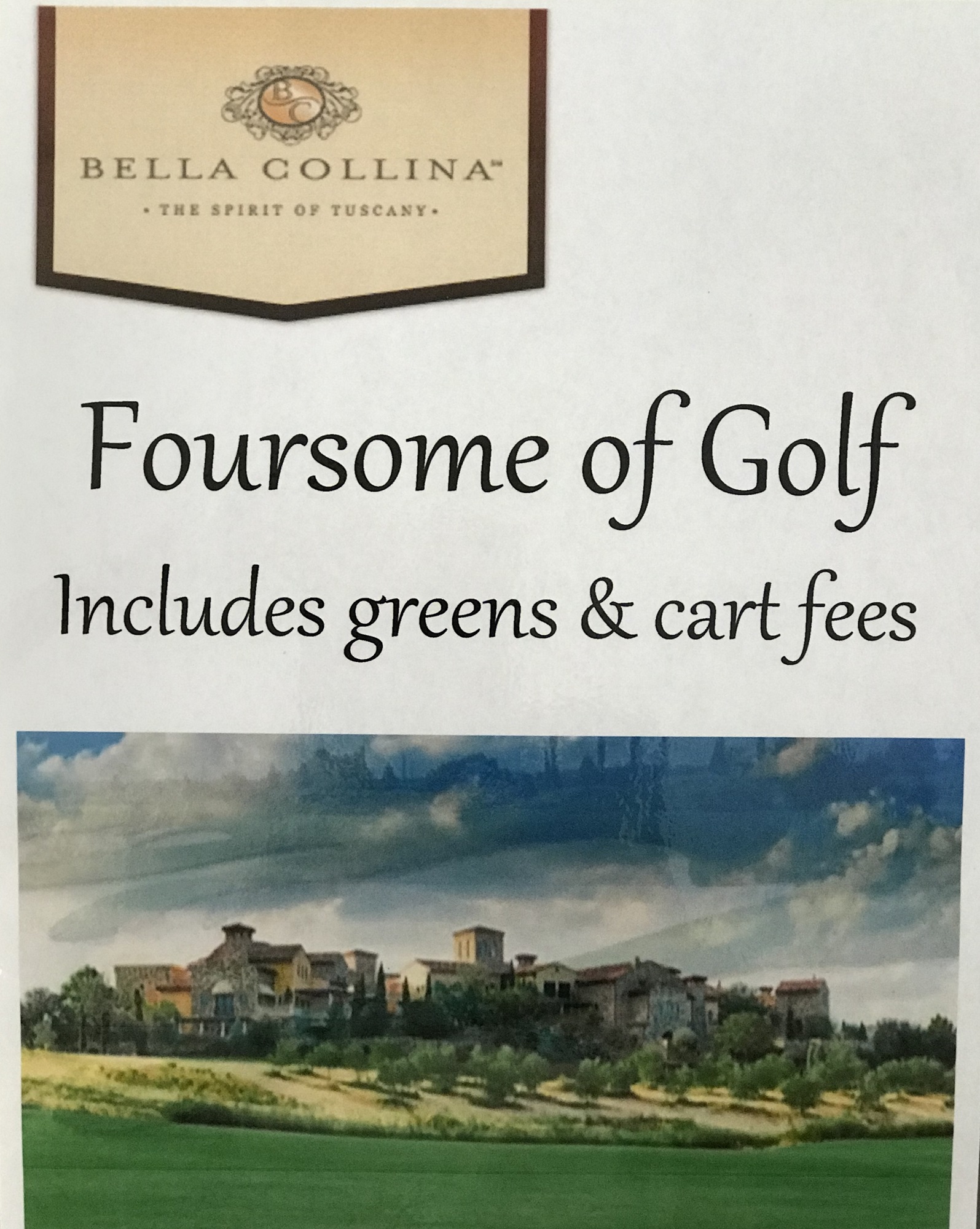 Certificate for one (1) foursome of golf. Includes greens & cart fees.