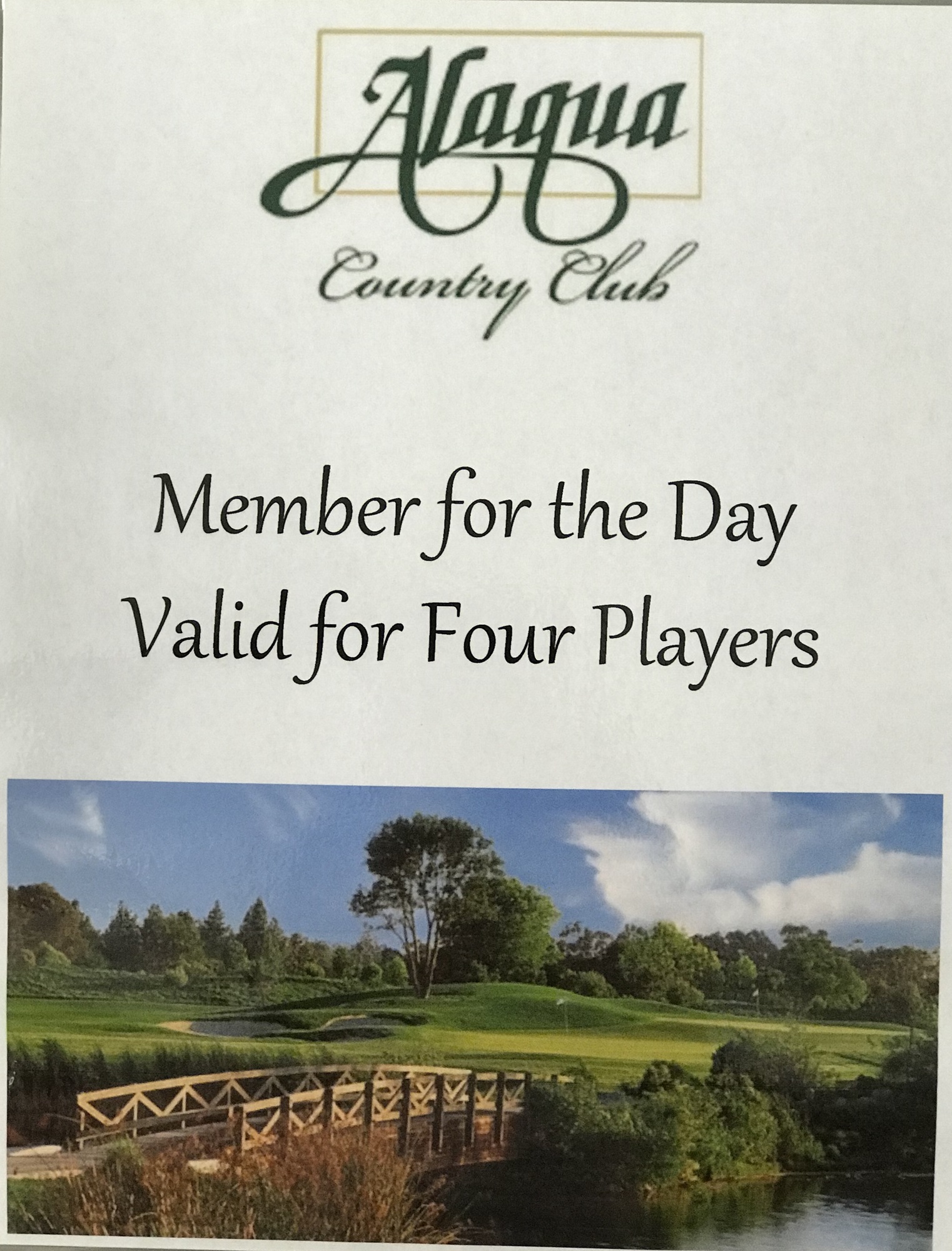 Be a member for the day at Alaqua Country Club! Valid for four (4) players.